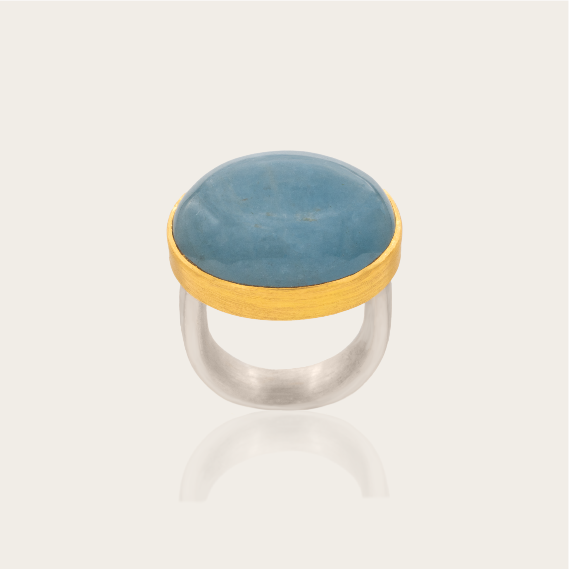 Die meisterhafte Handwerkskunst der Goldschmiedin Karin Kolster-Kelly aus Heidelberg verleiht diesem Ring eine einzigartige Ausstrahlung. Die Fassung aus 900er Gelbgold und die Ringschiene aus 925er Silber verbinden sich zu einer harmonischen Einheit, die zeitlosen Stil mit eleganter Raffinesse vereint.
