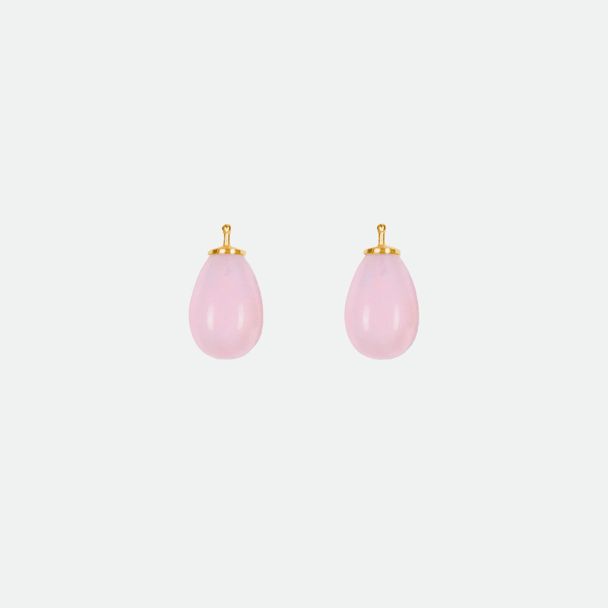 Handgefertigte böhmische Quarzglas-Tropfenin Rosa-Quarz, passend für alle Basis-Creolen von Heide Heinzendorff.