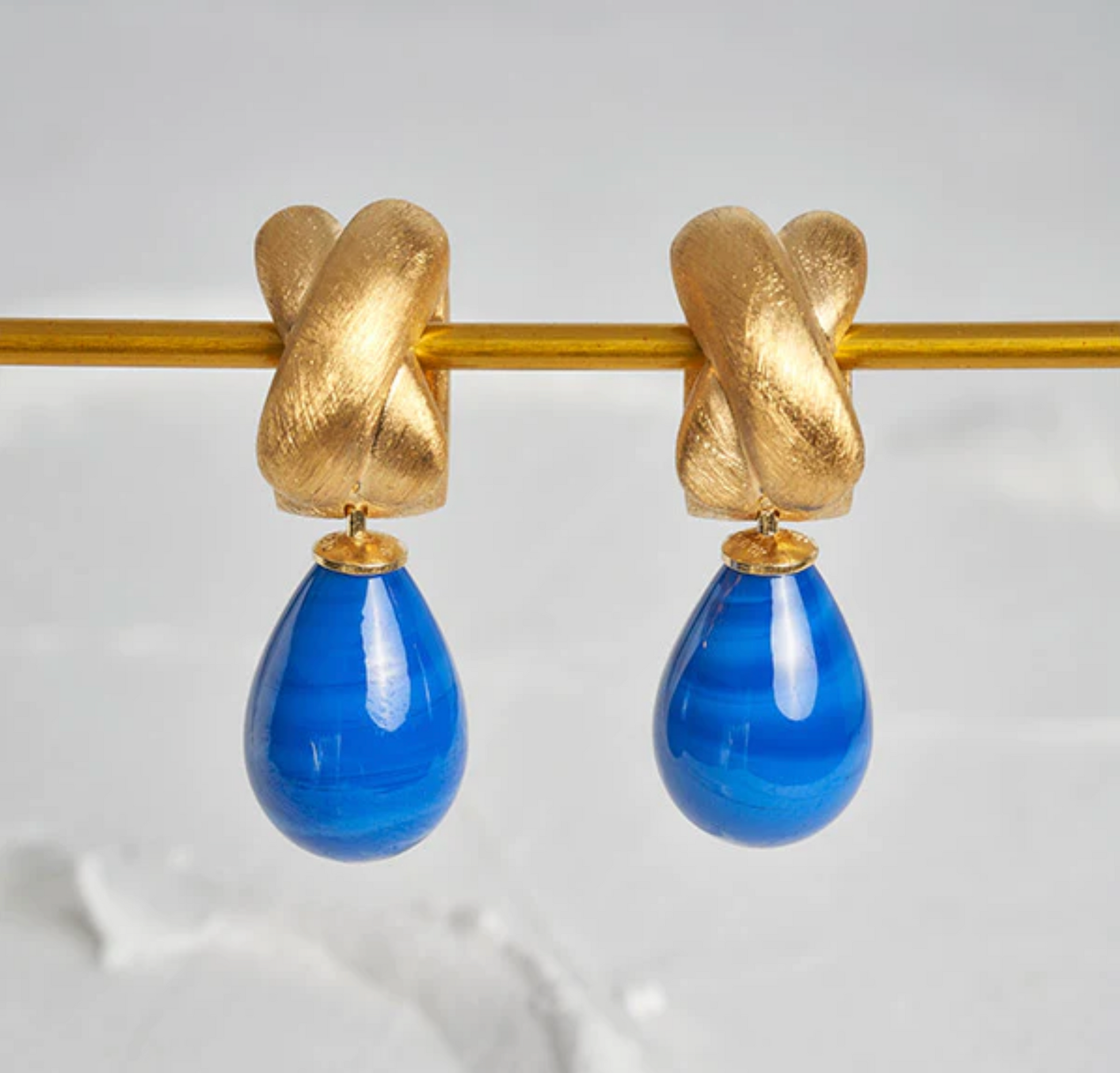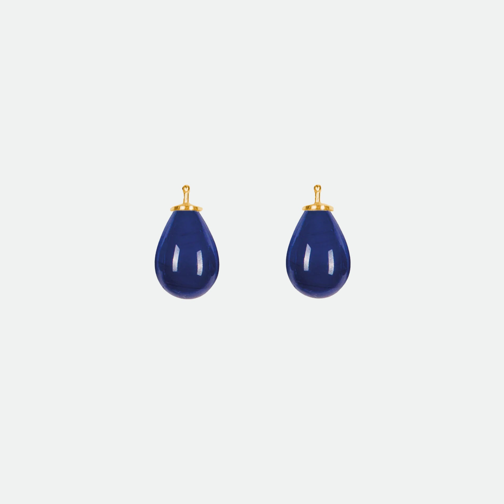 Handgefertigte böhmische Quarzglas-Tropfenin in Lapis-Blau, passend für alle Basis-Creolen von Heide Heinzendorff.
