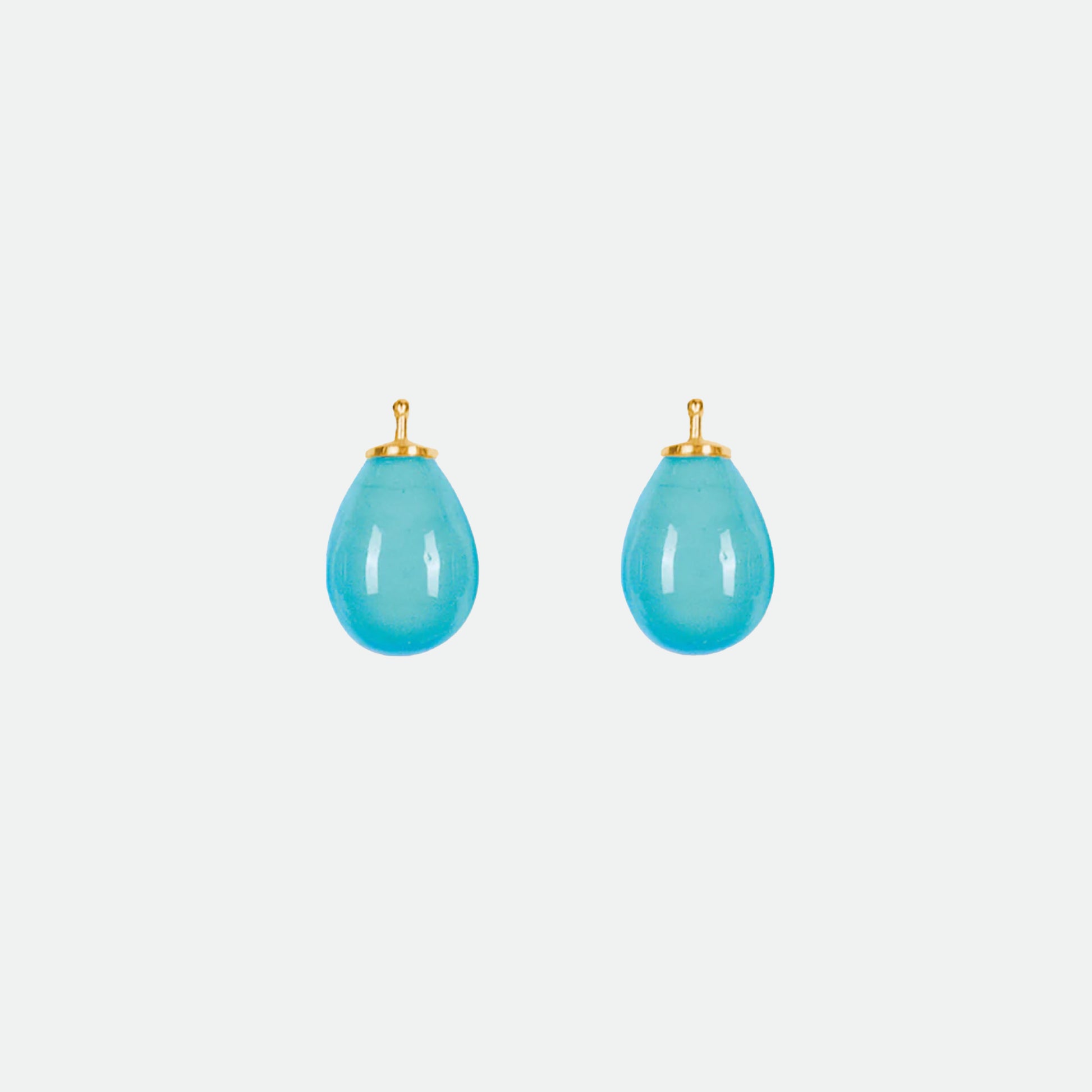 Handgefertigte böhmische Quarzglas-Tropfenin in türkis-farben, passend für alle Basis-Creolen von Heide Heinzendorff.