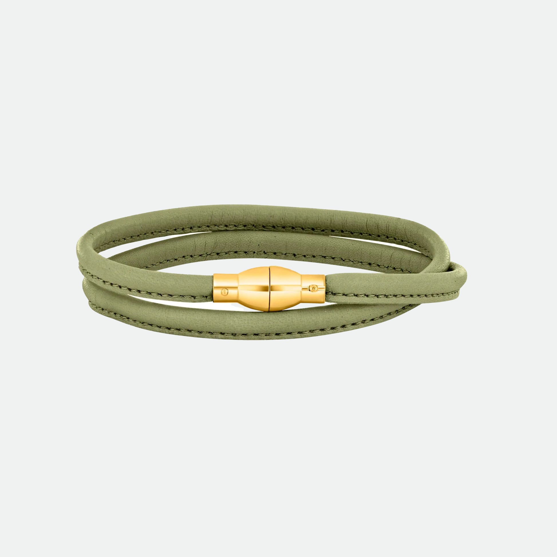 Heide Heinzendorff Lederarmband in Oliv-Grün mit silber vergoldeter Magnetschließe